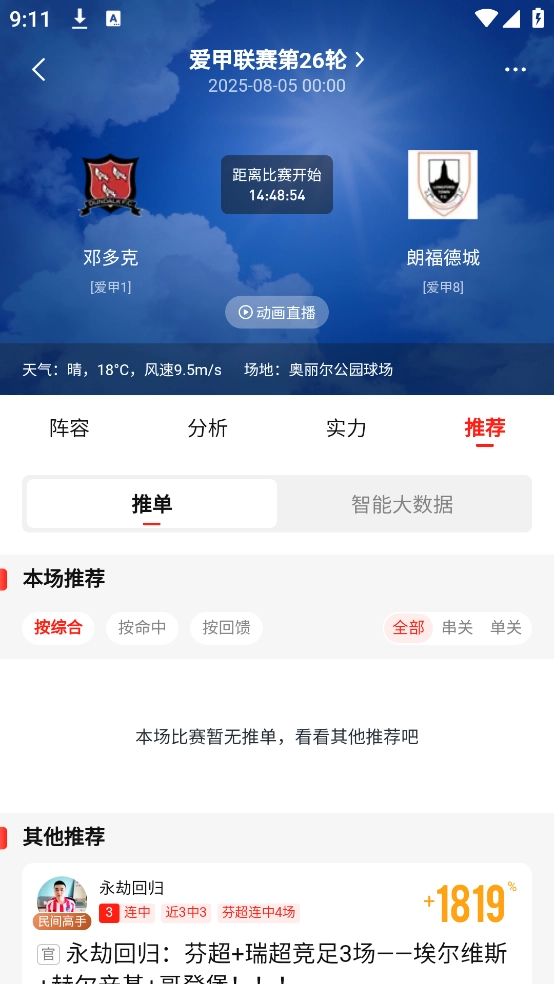 专业的赛事动画直播,高度还原赛场战况。