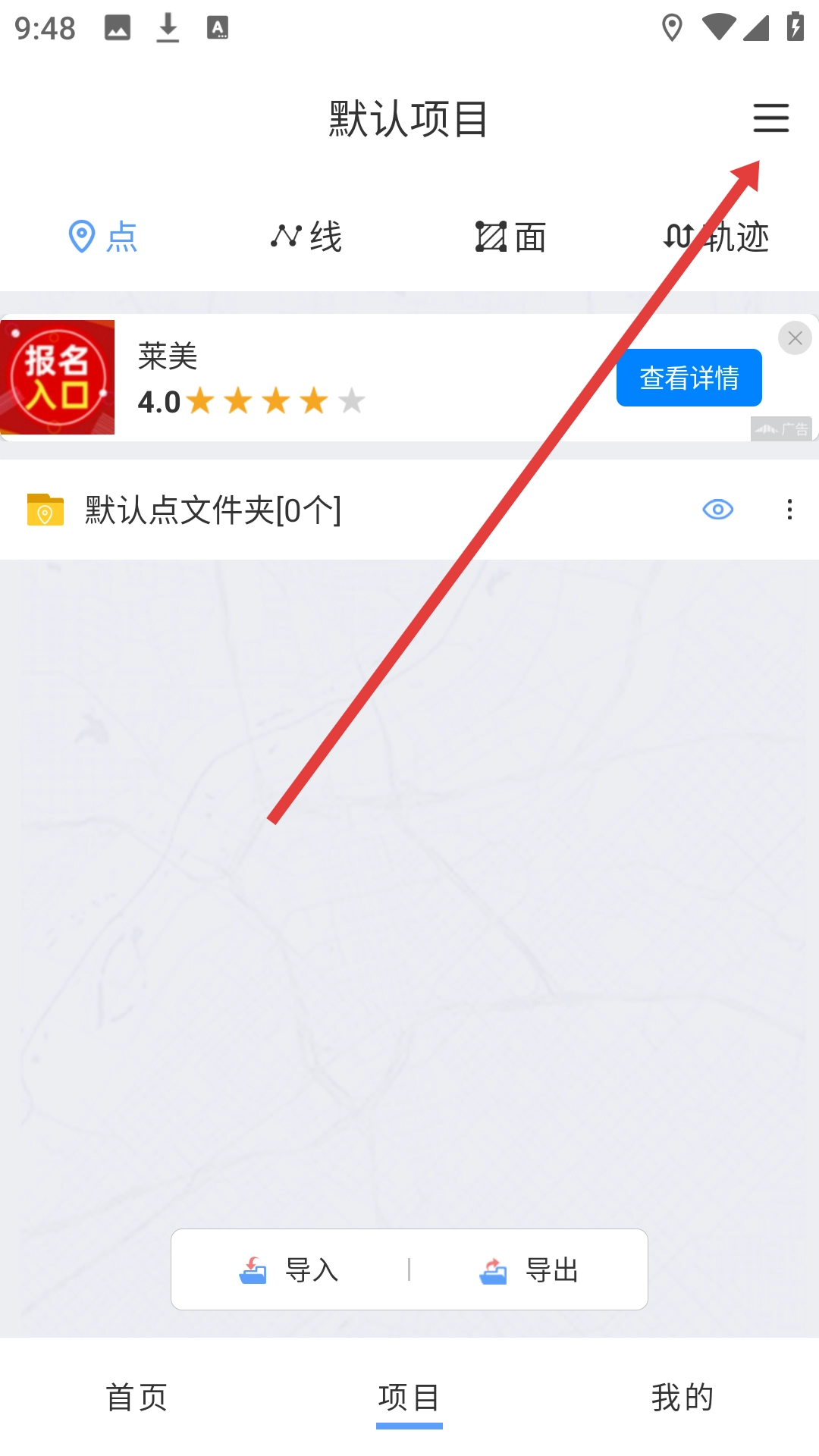 1. 于首页点击底部的【项目】,即可进入默认项目页面。
