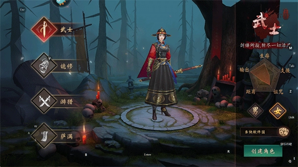 2、游戏中包含四大职业,武士、诡修、游猎、萨满,玩家可选择其一并输入ID以创建角色;