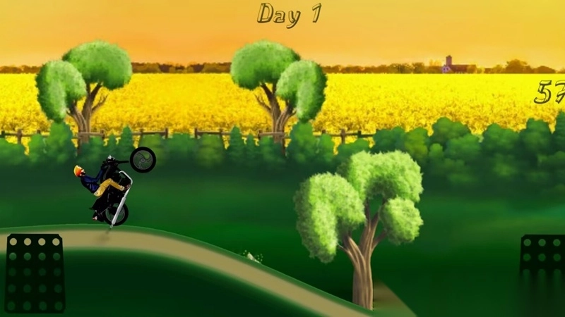 1、操控摩托在山地行驶,通过虚拟按键控制加速刹车转向,应对地形。