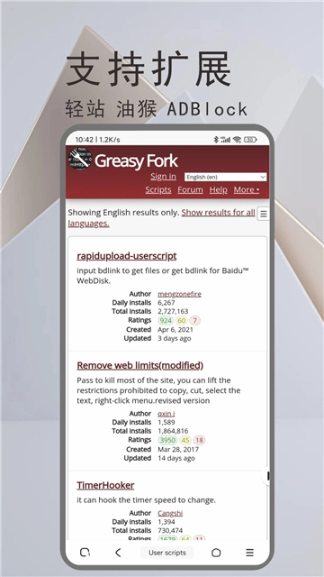 土狗浏览器的旧版本堪称一款极为出色的手机系统浏览查询应用。它不仅内存占用极小,功能却极为完备,一键点击便能瞬间启动。其主页简洁纯粹,除了搜索框,不见任何广告踪迹。在此,你能够查询任何感兴趣的资讯词条。不仅如此,它还支持添加油猴脚本,通过安装扩展插件,为土狗浏览器旧版本增添诸多新颖的使用方式。