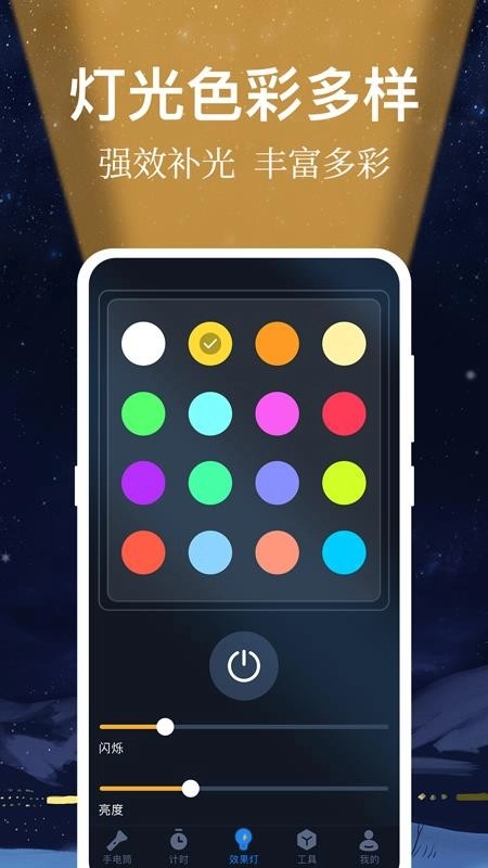 小熊强光手电筒,这是一款极为实用且功能多样的手电筒工具软件。在该应用里,你能轻松完成手电筒的开启与关闭操作。不仅如此,还能够根据自身需求,对手电筒照明的时间和亮度进行自定义设置,从而获得最佳照明效果,让你在夜间出行、寻找物品或是学习时更加便捷。它还具备手电爆闪模式,只需一键开启,就能实现疯狂爆闪,充分满足用户在多种场景下的使用需求。 小熊强光手电筒手机版更是贴心地为用户准备了众多实用工具,像计时器、效果灯、天气查询、指南针以及夜拍相机等功能一应俱全,一站式满足用户的各类使用需求。而且,这些工具的操作都非常简单,不存在复杂的流程,用户可以轻松上手。快来下载体验一番吧!