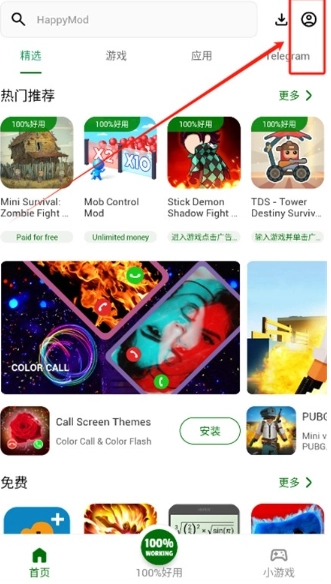 1、进入应用后,能看到界面中涵盖精选、游戏、应用、免费等多个板块。