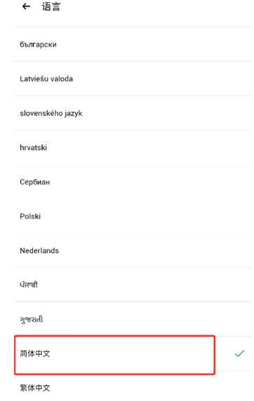 4、滑动到最下方,找到简体中文,点击即可设置成功