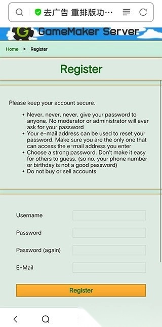 - 复制跳转网址:https://gamemakerserver.com/en/register