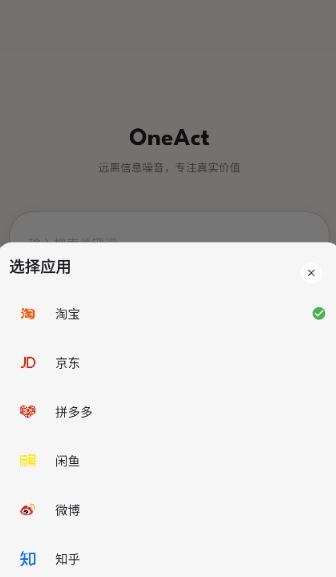 OneAct搜索是一款智能搜索软件,它深度整合了淘宝、京东、拼多多等电商平台,还有抖音、知乎、小红书等内容平台的搜索入口。用户借助它,能够一键跳转至目标平台的结果页面,从而快速获取精准信息,既节省了时间成本,又提升了信息获取的效率。