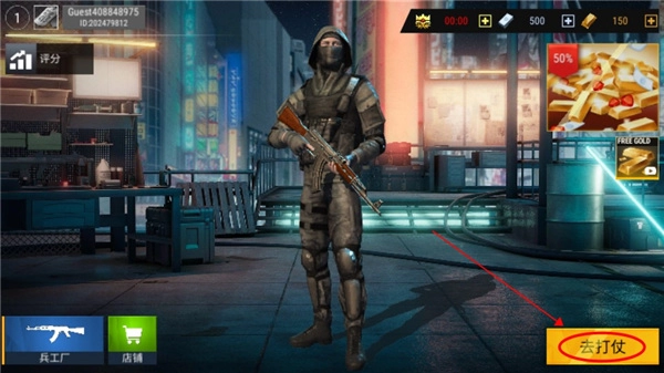 1、完成本站现代枪射击战争游戏后,点击客人账户类型。