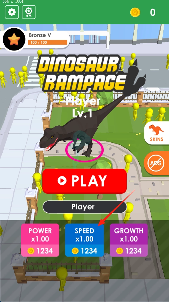 1、点击Play前,可消耗金币升级速度等属性,增强恐龙能力后再开始。