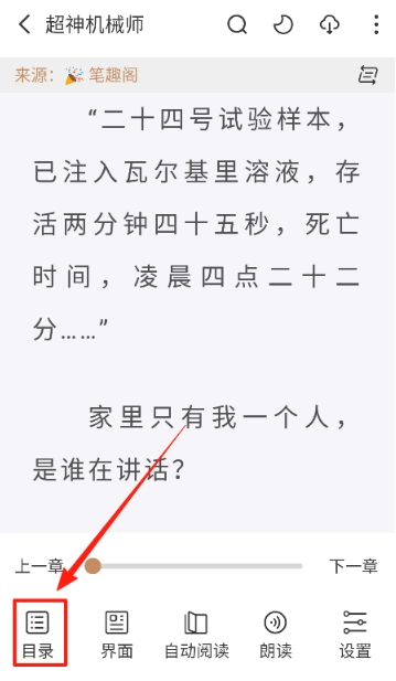 2、在小说的阅读页面中点击屏幕,在弹出页面中点击下方的"界面"