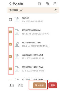 3、选择需要导入的文档,点击“导入书架”完成导入