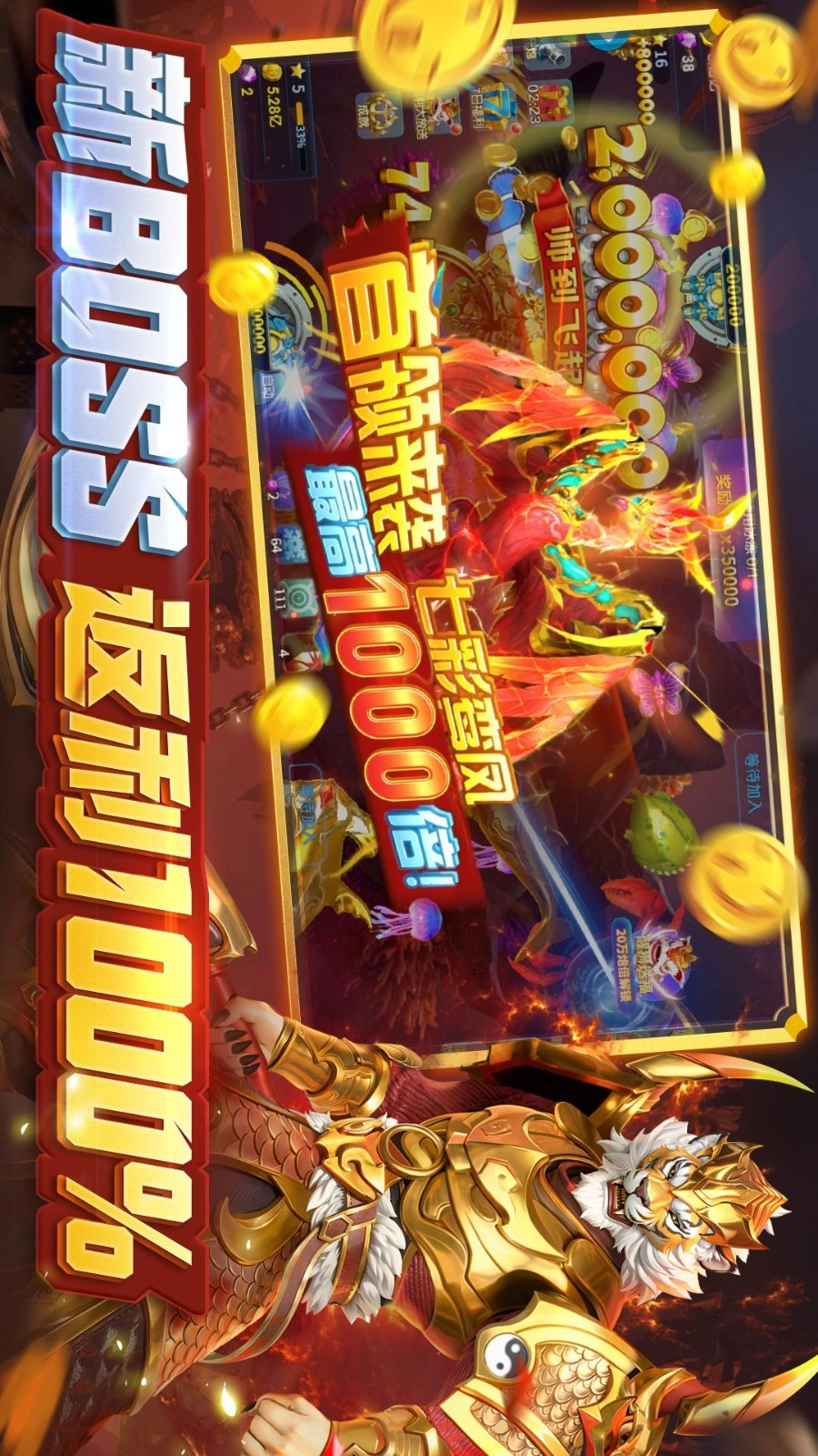 3、【鱼币翻番】 满屏爆金,一炮一BOSS,鱼币产出大升级!一个亿?的确是个小目标!