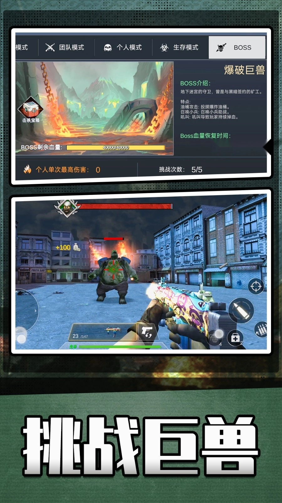 5、巨兽挑战极其考验枪械威力和身法,稍有不慎就会遇见强大的生化巨兽冲击导致失败,不能疏忽大意。