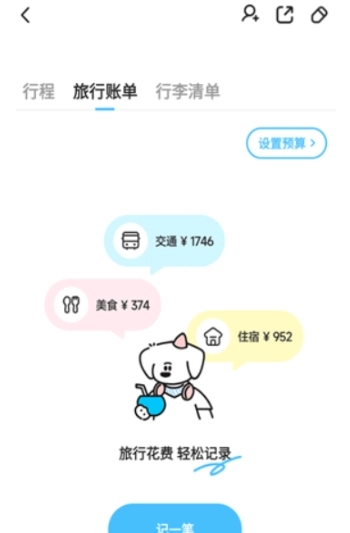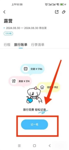 3、进入旅行账单界面,点击底部的【记一笔】