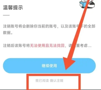 4、看到弹出的温馨提示,点击【我已阅读 确认注销】即可