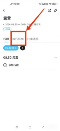 2、进入该计划界面,点击【旅行账单】