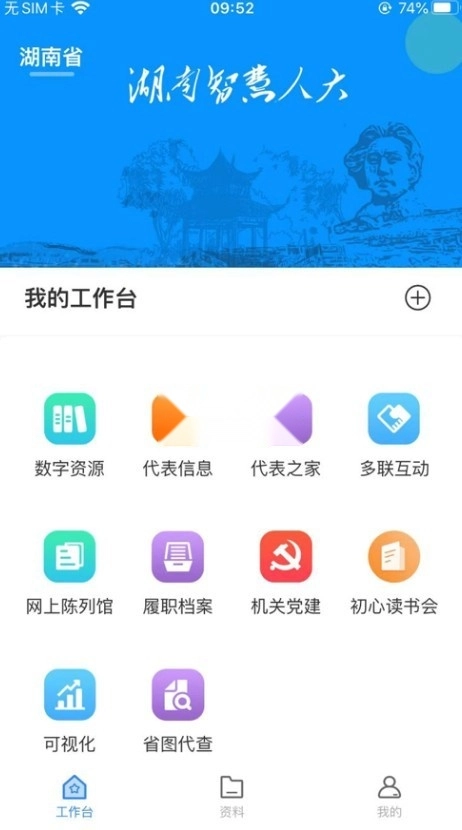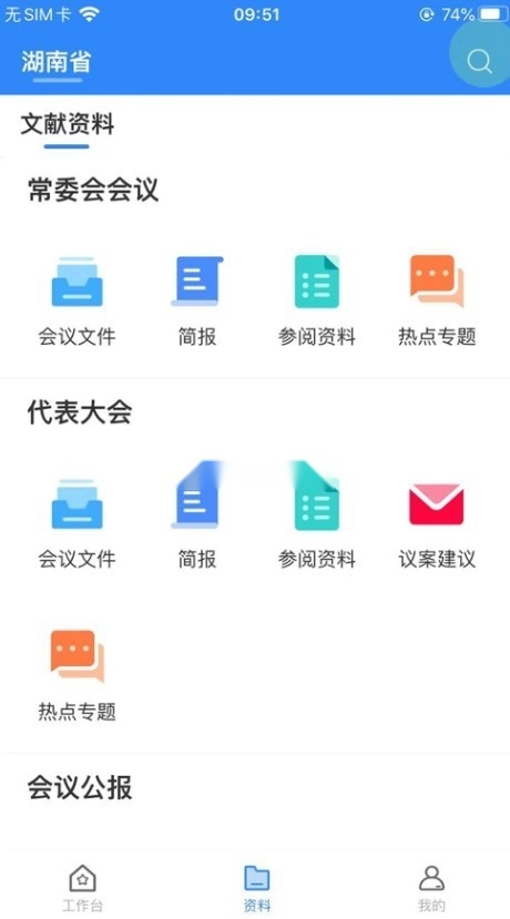 《湖南智慧人大》是一款助力参与人大工作的软件,其内部设有立法、监督、代表工作以及机关办公等多个模块。该软件支持工作台、资料与个人这三个主要版块,用户能够在此查看常委会会议、代表大会、会议公报等资料信息,同时软件还具备收藏、活跃度、设置等个人功能模块。