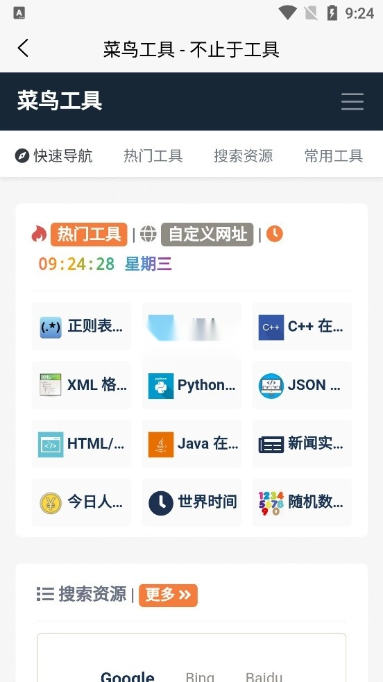 除此之外,小编最钟爱的就是菜鸟工具这个模块了。里面有许多编程语言所需的工具,像PHP在线工具、Python在线工具、C++在线工具等等。这些工具不仅能用于编程,还能解释编程语言所代表的含义。而且菜鸟工具里的教程也相当不错,非常细致,小编就是通过它学会了HTML。所以,感兴趣的朋友一定别错过!专注于编程学习的软件,涵盖了多种编程语言和相关技术,包括基本的Python、Java、JQuery、HTML等。它为用户提供了丰富的编程课程信息,通过各种实例帮助用户更好地理解和掌握编程知识。无论你是初学者还是有一定编程经验的开发者,这款软件都能为你提供实用的指导和支持,帮助你不断提升编程技能。