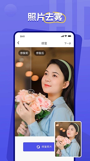 1这款软件只需一键操作,就能完成破损照片修复、去除噪点,还可为黑白老照片增添色彩,显著提升照片的视觉效果。它的AI智能处理速度极快,能分析照片具体情况,结合人物与场景信息进行上色,智能化程度很高。在给黑白老照片上色时,软件会分析场景与人物特征,智能调配色彩,让整体色调更协调。这是一款兼具智能化与高效性的照片修复工具,一键操作即可修复具有纪念意义的破损老照片。
