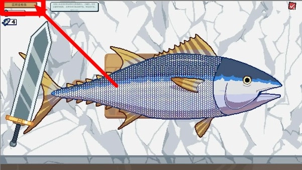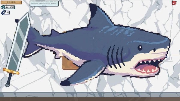 1.鲨鱼切割界面:左上角显示当前鱼体完整度与刀数,代表已完成切割的进度,需准确划刀保持效率最大化。