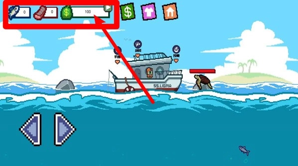 3. 资源货币界面:在画面的上方,会展示出三种货币资源,分别为鱼票、钞票以及绿色积分,这些货币资源乃是升级船只与装备的关键所在。