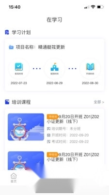 【培训进程】学习管家,统计用户报名培训的记录,以及提醒用户报到时间及培训、考试时间,让用户学习计划更清晰。