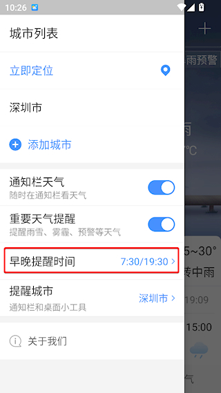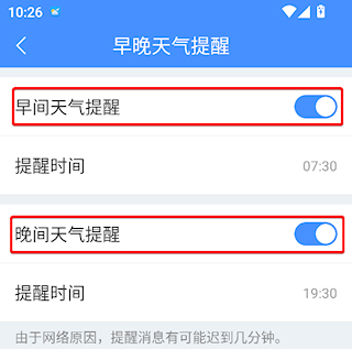 3、之后就能开启或关闭天气提醒了