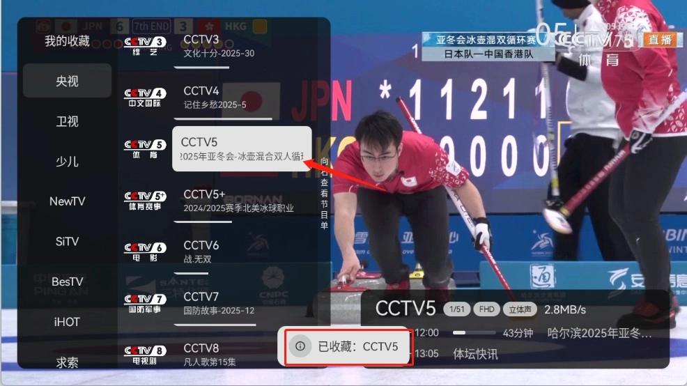 3、就可以看到收藏的频道了。