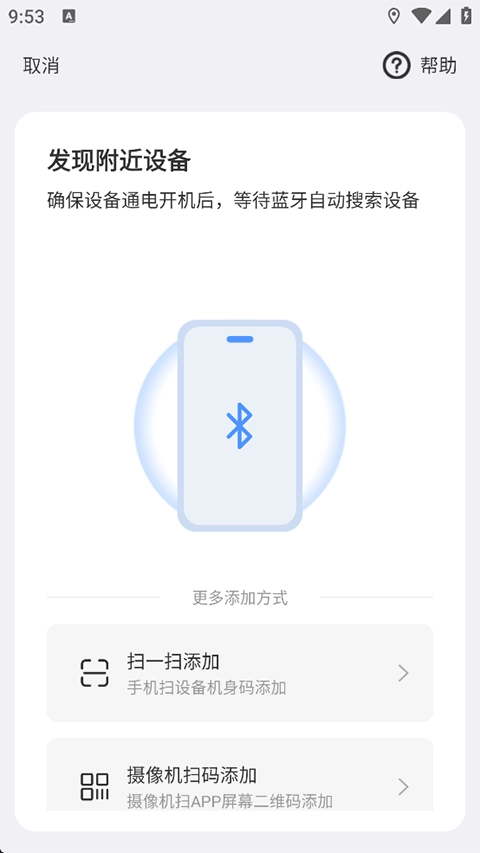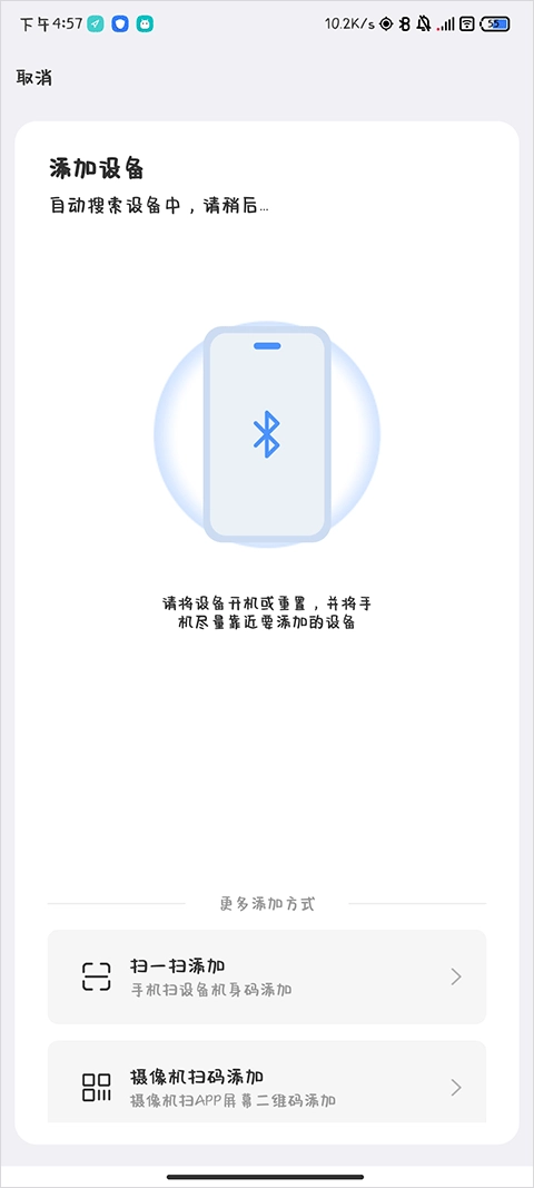 打开蓝牙,将设备开机或重制,并将手机尽量靠近要添加的设备;