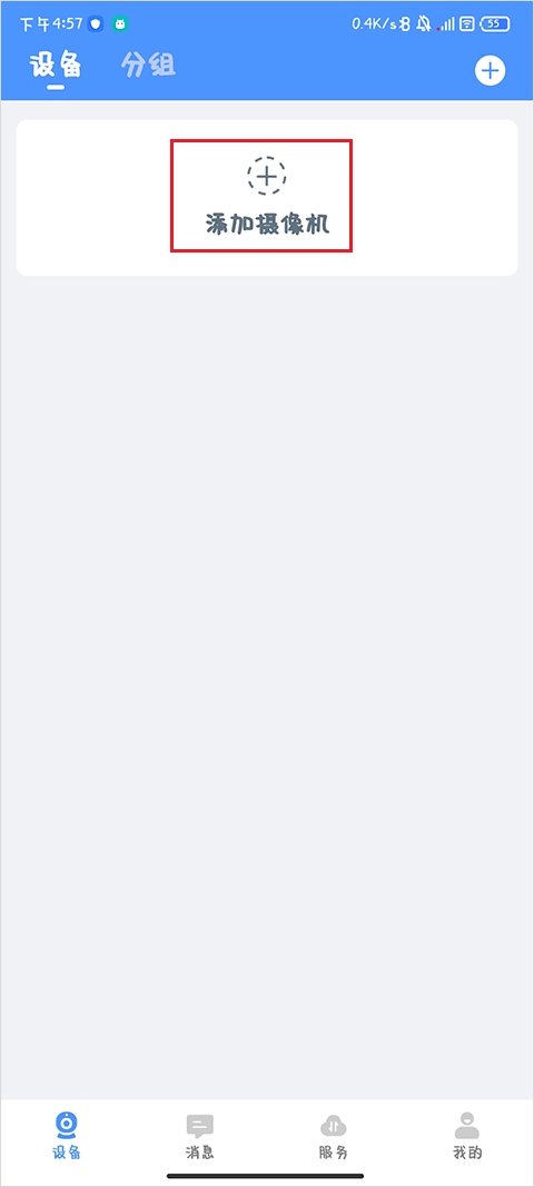 打开联云视监控,进入到用户首页,点击“添加摄像机”选项;