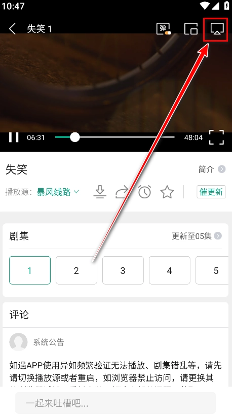 2.点击右上角的投屏图标。
