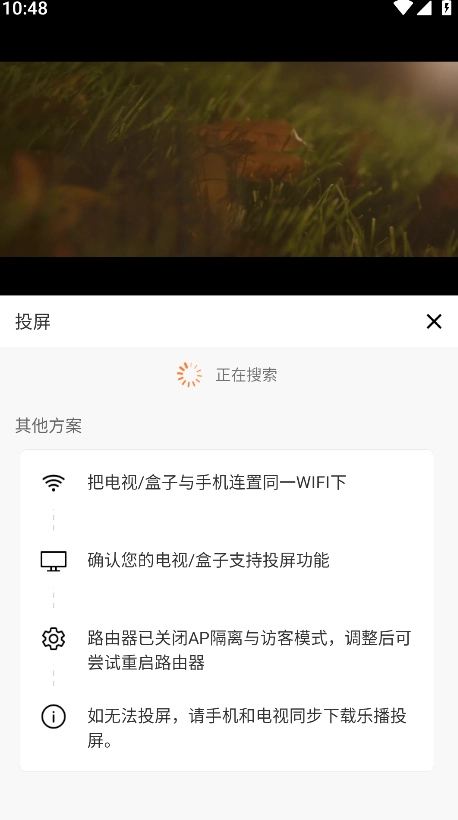 3.将电视与我们的手机连接同一个WiFi,然后点击下方出现的投屏设备,开始投屏即可。