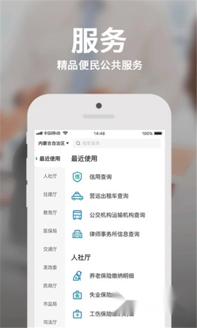 【信息服务】社保、公积金、高考成绩、交通违法等个人重要信息一键查询。政企联动实现企业信用、运输机构、经营许可证、法律等企业营运信息公开化。