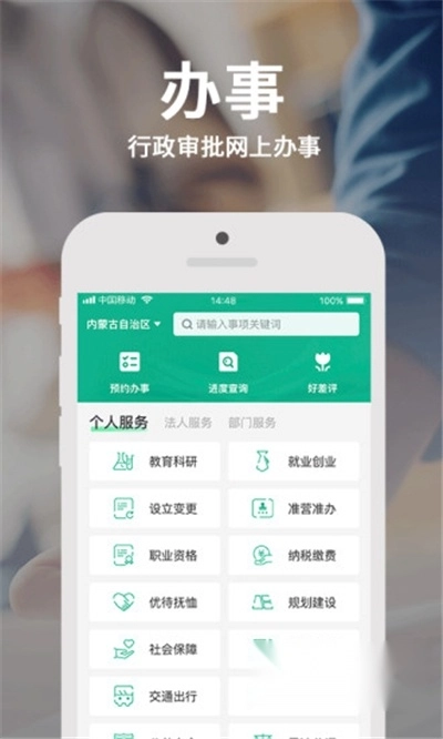 【服务】提供个人服务、法人服务、部门服务事项,页面导航一目了然,办事更轻松。
