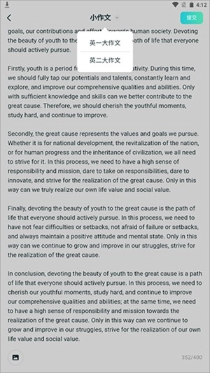 写好后就可以选择作文类型进行提交,提交好需要等待时间批发即可