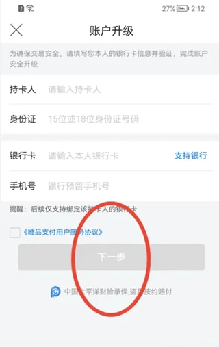 5、输入内容后,点击【下一步】按钮,即可开启极速付款成功。