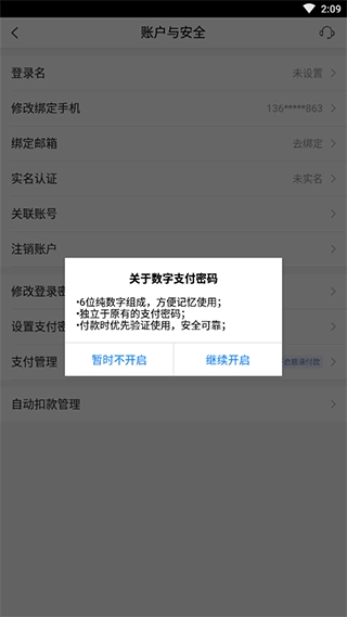 4、点击【继续开启】按钮,打开提示弹框,点击【继续开启】按钮。