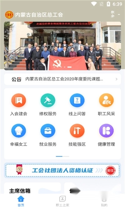 集结了网上申请建会、网上申请入会、维权务、心理支持、法律咨询、在线答疑、女工幸福、技能提升、干部培训、工会动态、爱心关怀等多项功能,旨在为职工提供便捷高效的工会服务网络平台。