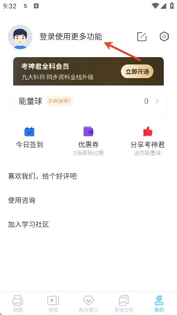 2、请确认您两个科目是否登陆同一个账号,点击底部我的按钮,点击头像核对登陆手机号。