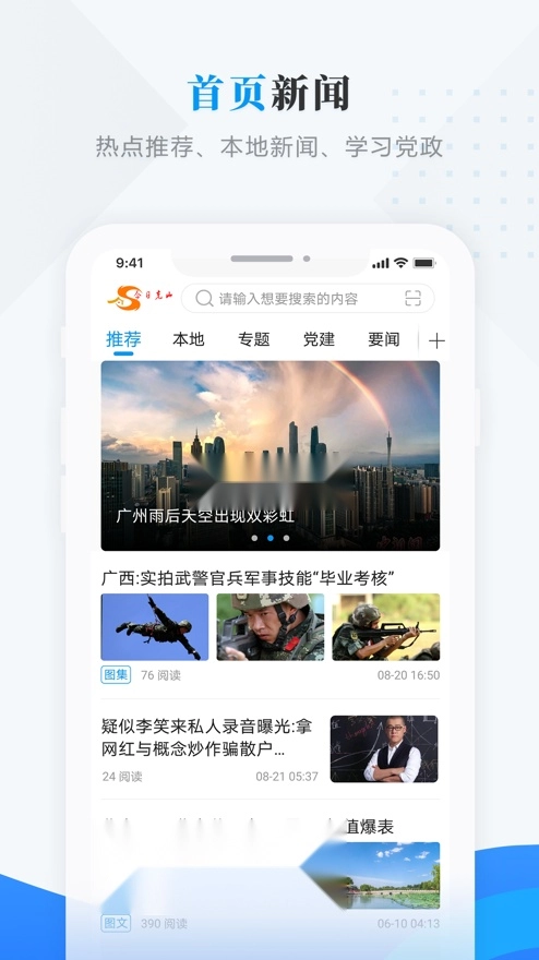 1、很简洁的资讯阅读界面,能直接去关注你比较感兴趣的一些栏目,阅读新闻更方便