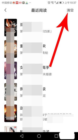 3、打开“最近阅读”界面以后,就可以看到自己所有的阅读历史了,想要删除掉时点击右上角的“清空”指令