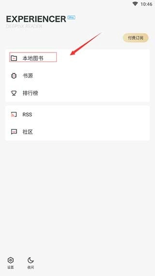 1. 于软件设置界面里找寻本地书籍,点击后进入。