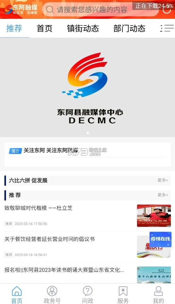 《东阿融媒》是一款融媒中心软件,通过它可以查看镇街动态与政务号,及时知晓最新政务政策。软件内设有短视频模块,可供观看,还提供了更多实用的版块。