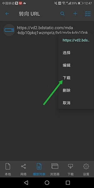 4、用户长按该视频文件,在弹出的下拉选项中选择【】
