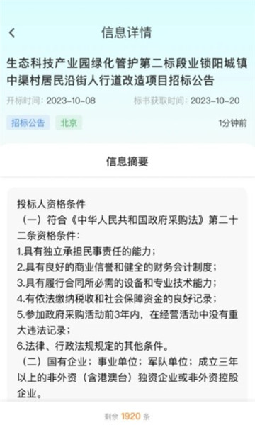 1这是一款专业的招标信息服务软件,能让用户便捷高效地获取各类商机。