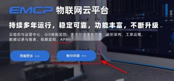 1、首先,打开云联物通,在页面底部找到并点击“申请账号”按钮 http://www.lfemcp.com/login