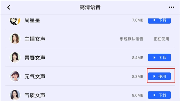 4、选择自己喜欢的导航语音后点击;
