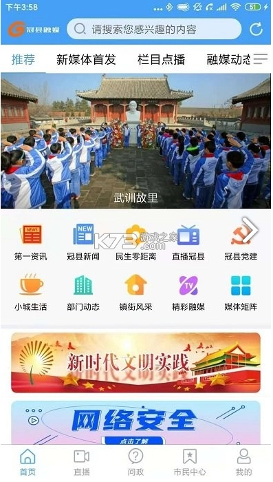 冠县融媒最新版,是冠县专属的政务融媒体平台软件。它为用户提供各类贴心服务,要是您遇到问题,随时能通过这款软件问政,且问题轻松就能解决。软件整合了众多相关部门以及乡镇街道资源,全心全意助力居民攻克各种难题。快来体验吧!它集本地新闻资讯、栏目点播、视频直播、部门动态、镇街风采、健康生活常识等功能于一身,充分满足群众多渠道获取信息的需求。同时,它还是发布县委县政府重大决策部署、宣传报道各领域重点工作、展示各级各部门创新举措与工作成效的权威媒体平台。