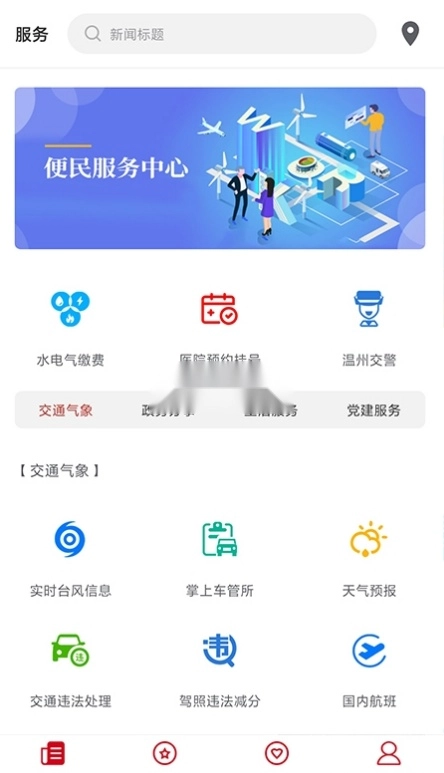 5、四大专题,交通气象,政务办事,生活服务,党建服务四个专栏等你解锁