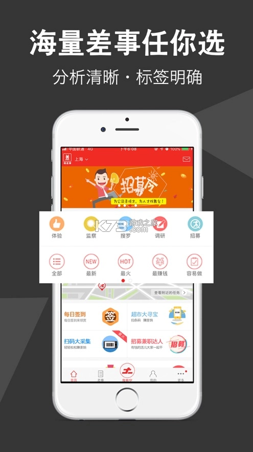 1、具有独特特色的移动应用首先,它采用了一种简单的任务发布和接收方式,使得用户可以轻松找到并完成自己感兴趣的任务