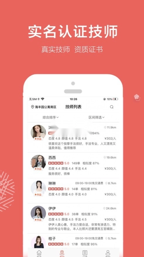 技师都是实名认证,比较正规专业